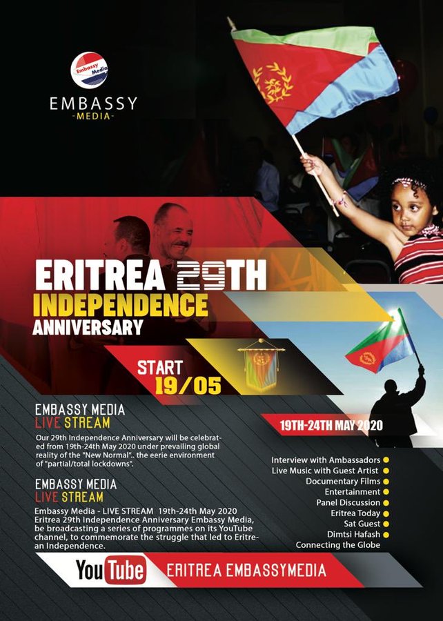 You are cordially invited to celebrate the 29th Eritrean Independence Anniversary from 19 - 24 May 2020.