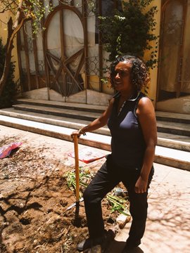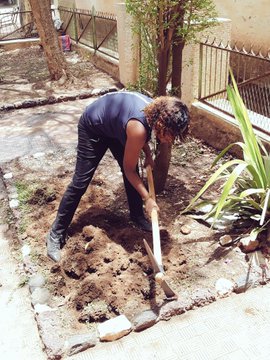 Eden Tareke PHD Orota College of MHS Asmara, Researching development sustainable Food 4 Health, spent #EritreaGreeningDay digging/planting evergreens outside the lab.Tho breaching #Covid19 #StayAtHome Dr Eden says "It's therapeutic, sod the 'new normal'"