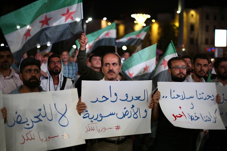 Protests in Aleppo following Israeli strikes on the Syrian army. Bilal Al-Hammoud/AAP