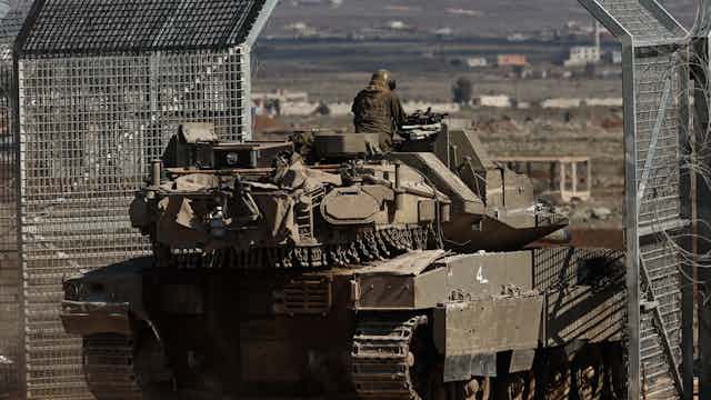 An IDF tank entering the buffer zone between Israel and Syria. Atef Safadi/AAP